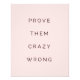 Did you know you can change the background colour to any colour your want or add your own photo to the background of the quote? Simply click the "Customise it" button and delete the pink background and either add you own photo or choose a new background colour from the colour palette. "Prove Them Crazy Wrong". Silence the doubters with this inspirational motivational quote, in a stylish minimalist typographic design of blush pink and black. Let this positive quote uplift your day and remind you to believe in your mission. Makes the ideal gift for the entrepreneur, small business owner, or anyone working hard to achieve their dreams against the odds.