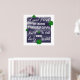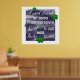 Texte blanc sur fond bleu style tableau d’école, entouré de trèfles à quatre feuilles verts.