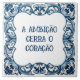 Azulejo português com floreados e provérbio: A ambição cerra o coração