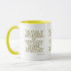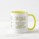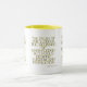 This two-tone mug features a chalga light print font with blue letters yellow outline showcasing the "Proverbs 1:7 KJV" bible scripture verse over a white background. This verse is referencing the Book Of Proverbs 1st chapter showing the 7th verse in this bible scripture quote theme from the King James bible. The rim & handle are glazed in matching colours available in 11-ounce or 15-ounce sizes microwave and dishwasher safe ceramic construction.