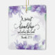 Personalised friendship Christmas ornament depicts a simple floral watercolor design with lavender, blue and purple flowers. It features an inspirational quote taken from Bible Verse Proverbs 27:9, "A sweet friendship refreshes the soul." The back features Ephesians 1:16, "I do not cease to give thanks for you, remembering you in my prayers." Both back scripture and name can be customised to the details of your choice.