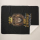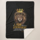 This blanket features a dual bold print font with yellow and white letters displaying the "Proverbs 30:30" bible verse scripture and citation with the face of a lion wearing a king's crown above in the faith based theme. This Blanket features a vivid image on one side and the softest Sherpa available on the reverse made from 100% polyester and printed mink with ultra-soft sherpa backing.