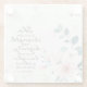 Inspirational quote scripture glass coaster depicts a beautiful floral design with pink flowers and blue leaves. It features Bible Verse Proverbs 31:25, "She is clothed in strength and dignity and she laughs without fear of the future."