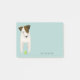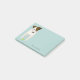 These Parson Jack Russell-themed Post-it® Notes feature a cartoon JRT with an irresistible head tilt and a tennis ball at her feet - the background colour is also customisable, shown here in light teal - Jack Russell Terrier with Head Tilt design © katz_d_zynes 2019