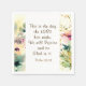 Napkins with inspirational quote scripture depicts a watercolor art design with pink and yellow flowers and greenery. It features a beloved Bible Verse Psalm 118:24, "This is the day the LORD has made; we will Rejoice and be Glad in it."