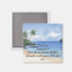 Bible verse watercolor magnet of a beautiful day at the beach with lovely blue skies and palm trees. It features Psalm 118:24 “This is the day which the LORD hath made; we will rejoice and be glad in it.”