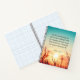 Inspirational quote scripture personalised notebook, journal depicts a beautiful nature photograph including a pink and yellow sunrise with blue skies over a meadow. It features an encouraging Bible Verse Psalm 143:8, "Let the morning bring me word of your unfailing LOVE, for I have put my trust in you. Show me the way I should go, for to you I entrust my life." Customise the back with name and date or the details of your choice.