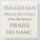 A series of six coasters containing the lyrics to the first verse of the hymn version of Psalm 148: "Hallelujah, praise Jehovah, from the heavens praise His name..."