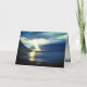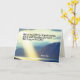 Greeting card with inspirational quote scripture depicts a beautiful nature photograph of the sun shining through the clouds over the water, with blue skies and dark mountains in the background. It features an encouraging Bible Verse Psalm 27:14, "Wait on the LORD; Be of good courage, And He shall strengthen your heart; Wait, I say, on the LORD!" The greeting, prayer can be personalised or deleted for a hand written message.