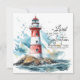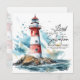 Flat greeting card with inspirational quote scripture depicts a red and white lighthouse on a rocky ocean coastline. It features a powerful and encouraging Bible Verse Psalm 27:1, "The LORD is my light and my salvation; Whom shall I fear? The LORD is the strength of my life; Of whom shall I be afraid?" The greeting, prayer can be personalised or deleted for a hand written message.