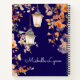 Personalised notebook, journal inspirational quote scripture depicts an autumn watercolor design with fall coloured leaves surrounding hanging lantern lights on a black background. It features an encouraging Bible Verse Psalm 27:1, "The Lord is my light and my salvation: whom shall I fear." Customise the back with a name or details of your choice.