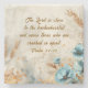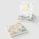 Stone coaster with inspirational quote scripture depicts a beautiful artistic design with blades of golden wheat and blue flowers on a light grey abstract background. It features an encouraging Bible Verse from Psalm 34:18, "The Lord is close to the brokenhearted and saves those who are crushed in spirit."