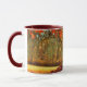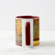 Inspirational scripture mug depicts a beautiful autumn nature scene with a large tree trunk and red and yellow fall leaves. It features a portion of Bible Verse Psalm 46:10, "Be Still and Know I Am God."