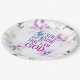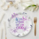 Inspirational scripture paper plate depicts a beautiful watercolor violet garden design with simple flowers and leaves. It features Bible Verse Psalm 46:10 "Be still and know that I am God." *