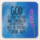 Psalm 46:1 reads, "God is our refuge and strength, an ever-present help in trouble." Order now and let the comforting words of Psalm 46:1 uplift your spirit every day! Beautiful, peaceful and inspirational background washed in shades of blue with a bright lilac stem. Minimalist.