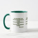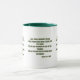 This two-tone mug showcases a design that features a Luducudu print font with green letters tan outline featuring the "Psalm 54:6-7" KJV bible scripture verse over a white background in this faith based theme. This verse is referencing the Book Of Psalm 54th chapter showing verses 6 through 7 in this bible scripture quote theme from the King James bible. The rim & handle are glazed in matching colours available in 11-ounce or 15-ounce sizes microwave and dishwasher safe ceramic construction.