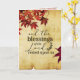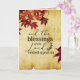Inspirational Thanksgiving greeting card depicts a branch of beautiful red Japanese Maple leaves on a background of parchment paper. It features a portion of Bible Verse Psalm 90:17, "And the blessings of the Lord rested upon us." The inside greeting can be customised and the card used for many occasions.