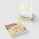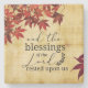 Inspirational stone coaster depicts a branch of beautiful red Japanese Maple leaves with a background of parchment paper. It features a portion of Bible Verse Psalm 90:17, "And the blessings of the Lord rested upon us."