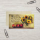 Inspirational quote business card depicts a beautiful still life with a vase of sunflowers and bowl of fruit. It features a portion of Bible Verse Psalm 95:2, "Let us come into his presence with thanksgiving."