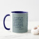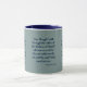 This two-tone mug features a tan the whistler print font with navy blue letters showcasing the "Psalms 23:4 KJV" bible scripture verse over a silver-green background. This verse is referencing the Book Of Psalms 23rd chapter showing the 4th verse in this bible scripture quote theme from the King James bible. The rim & handle are glazed in matching colors available in 11-ounce or 15-ounce sizes microwave and dishwasher safe ceramic construction.