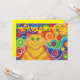 Groovy baby! Invitation with a pink striped cat with swirling whiskers and a psychedelic rainbow patterned background. A pink, blue, green, purple, and yellow customisable design for you to personalise with your own text, images and ideas. The text can easily be changed using the template provided or click the 'Customise It' button to make further alterations. An original digitally enhanced coloured pencil drawing by Jess Perry.