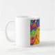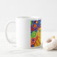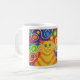 Groovy baby! A yellow striped cat with swirling whiskers and a psychedelic rainbow patterned background. Mug with a customisable design for you to personalise with your own text, images and ideas. An original digitally enhanced coloured pencil drawing by Jess Perry.