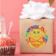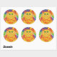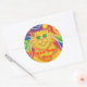 Groovy baby! A yellow and orange striped cat with swirling whiskers and a psychedelic rainbow patterned background. Round sticker with a yellow, orange, red, blue, green, pink, purple, and white customisable design for you to personalise with your own text, images and ideas. The text can easily be changed using the template provided or click the 'Customise It' button to make further alterations. An original digitally enhanced coloured pencil drawing by Jess Perry.