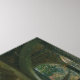 This design features a painting by the English artist Sir Edward John Poynter (1836–1919), who served as President of the Royal Academy of Arts. It depicts the Greek goddess Psyche, who is associated with the soul. She is also associated with butterflies, hence the white butterfly in this depiction. Psyche here is wearing an orange dress with a low neckline and she has an orange tie in her hair. She appears deep in contemplation as she considers the beauty of the small butterfly that she is enticing with flowers on a branch. Psyche is shown as a beautiful young woman in an elegant and opulent palace with lots of marble and exquisite architecture. The original artwork was painted by Edward Poynter in 1882, and it is now housed in the Walker Art Gallery in Liverpool, a major city in the North West of England.
