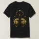 I give wanted to give this a 4 instead of a 5 because these Basic DARK T0shirts run unexpectedly SLIM or Narrow. Which is great if you do not have a potbelly, but I have a paunch. It isn't the shirt's fault that I've got a beer belly. The design and shirt itself is a quality cotton shirt. The color is more of a deep purple, but still a very pretty color. The Basic DARK T-shirts run a bit SLIMMER than the Basic Ts. The neck is a fraction narrower (or seems to be narrower) also. I'm a paunchy middle-aged woman and my neck is 12 inches (31cm) thick and the neckline fell about the same as in the photo of the man, and I had the desire to tug it a bit. So if you're a thick necked man or like loose shirts, be aware these are slimmer shirts. Once I get rid of my lockdown paunch it'll look great. The shirt washed well in cold water with no apparent bleeding. We don't have a dryer, so it hung dry. Did not shrink. Love the colors and the design. The design looks smaller on my shirt than it does on the model on-line. But still, it looks good on the shirt. The printing looks as it does on the model, just the size seems fractionally smaller. Washed garment in cold water, hung dry and design appeared unaffected.