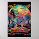 Bring a touch of cosmic humour to your space with this colourful poster featuring aliens enjoying a trippy smoke session on a psychedelic planet. This unique and vibrant design is sure to make a statement in any room, perfect for adding a quirky and playful vibe to your decor.