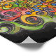 A guy has a magnificent psychedelic beard that is groovy and far out.