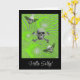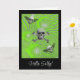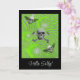 Flying winged skulls on a psychedelic green background. Can be adapted for any occasion such as birthday. Young, funky graphic design. Just add your own message inside and name on front.
