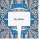 A sophisticated geometric kaleidoscopic fractal pattern in blues and greys. The text (on the products where it is possible) is yours to change, if you wish.