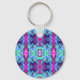 Psychedelic Green and Blue Hibiscus Pattern Key Ring