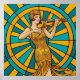 A colorful psychedelic poster featuring a guitar player surrounded by flowing abstract waves and vibrant sunburst patterns. This retro-inspired musical art piece brings energy and a mid-century modern vibe to any music room or creative studio.