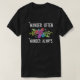 I give wanted to give this a 4 instead of a 5 because these Basic DARK T0shirts run unexpectedly SLIM or Narrow. Which is great if you do not have a potbelly, but I have a paunch. It isn't the shirt's fault that I've got a beer belly. The design and shirt itself is a quality cotton shirt. The color is more of a deep purple, but still a very pretty color. The Basic DARK T-shirts run a bit SLIMMER than the Basic Ts. The neck is a fraction narrower (or seems to be narrower) also. I'm a paunchy middle-aged woman and my neck is 12 inches (31cm) thick and the neckline fell about the same as in the photo of the man, and I had the desire to tug it a bit. So if you're a thick necked man or like loose shirts, be aware these are slimmer shirts. Once I get rid of my lockdown paunch it'll look great. The shirt washed well in cold water with no apparent bleeding. We don't have a dryer, so it hung dry. Did not shrink. Love the colors and the design. The design looks smaller on my shirt than it does on the model on-line. But still, it looks good on the shirt. The printing looks as it does on the model, just the size seems fractionally smaller. Washed garment in cold water, hung dry and design appeared unaffected.