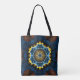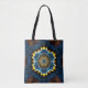Psychedelic Mandala Flower Blue Yellow and Orange Tote Bag