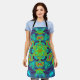 Psychedelic Mandala Flower Green Blue and Red Apron