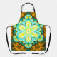 Psychedelic Mandala Flower Teal and Yellow Apron