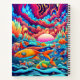 Colourful fish swimming in a psychedelic ocean