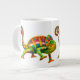 Original fine artwork of a psychedelic Panther Chameleon lizard by animal artist Carolyn McFann of Two Purring Cats Studio on a ceramic jumbo mug for all who love chameleons and other reptiles.
