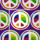 Graphic of tie-dye style peace signs symbols, repeat pattern, background colour customisable