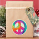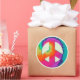 Round sticker with an image of a brightly coloured psychedelic peace symbol on light green. See matching custom-cut vinyl sticker, confetti, favour bag, favour box, favour tag, gift bags, label and wrapping paper. See the entire Disco 70s Sticker collection in the INVITES | Stickers & Labels section.