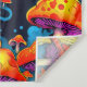 Colourful trippy psychedelic mushrooms in blue, orange and yellow tapestry to add a vibrant unique look to your room.