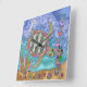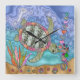 Psychedelic Sea Turtle Seahorse Art Square Wall Clock