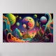 Alien planet landscape Psychedelic Space banner template, background Horizontal illustration of the future with mountains, planets, trees, moon Surrealist escapism