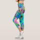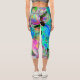 Psychedelic Trippy Lime Green and Blue Flowers Capri Leggings