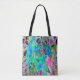 Psychedelic Trippy Lime Green and Blue Flowers Tote Bag