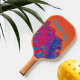 Feel the Tropical Vibes of this psychedelic pop art Pickleball paddle with bright multi colour shades of orange, pink, blue and purple palm fronds. This paddle is fun, vibrant and colourful! Nature with a playful pop of vibrant colour. Personalise with a Name or your own text.