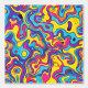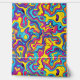This artwork presents a vibrant and energetic composition of swirling, wavy lines in a kaleidoscope of colours. The design features bold, overlapping shapes in electric hues of yellow, blue, pink, purple, and orange, creating a dynamic and fluid movement throughout the piece. The undulating forms and intense colour palette evoke a sense of psychedelia, reminiscent of 1960s and 1970s art. The interplay of curves and contrasts makes the artwork visually stimulating and full of life.